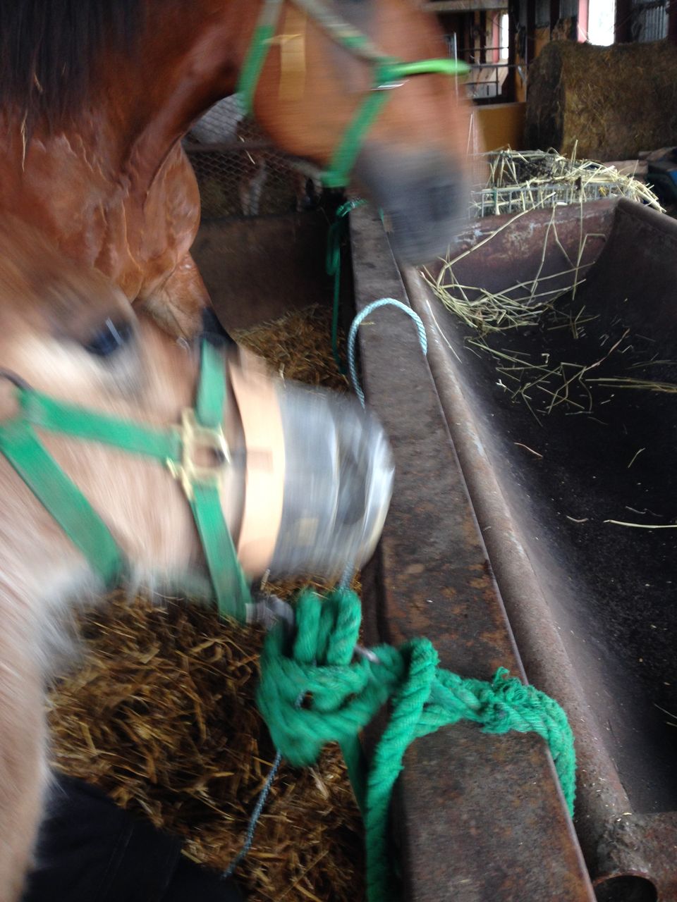 仔馬の口に装着して、一晩様子を見ることにした。この即席の口籠は同行したO獣医師の発案で