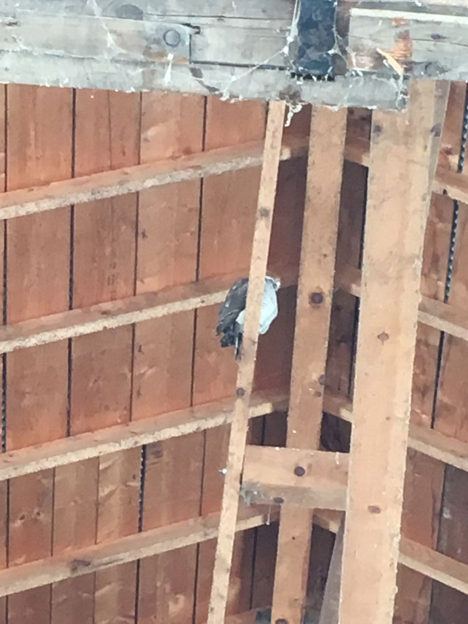 「あそこらへんに、やられた鳩の死骸が落ちてるはずなんですけど。」