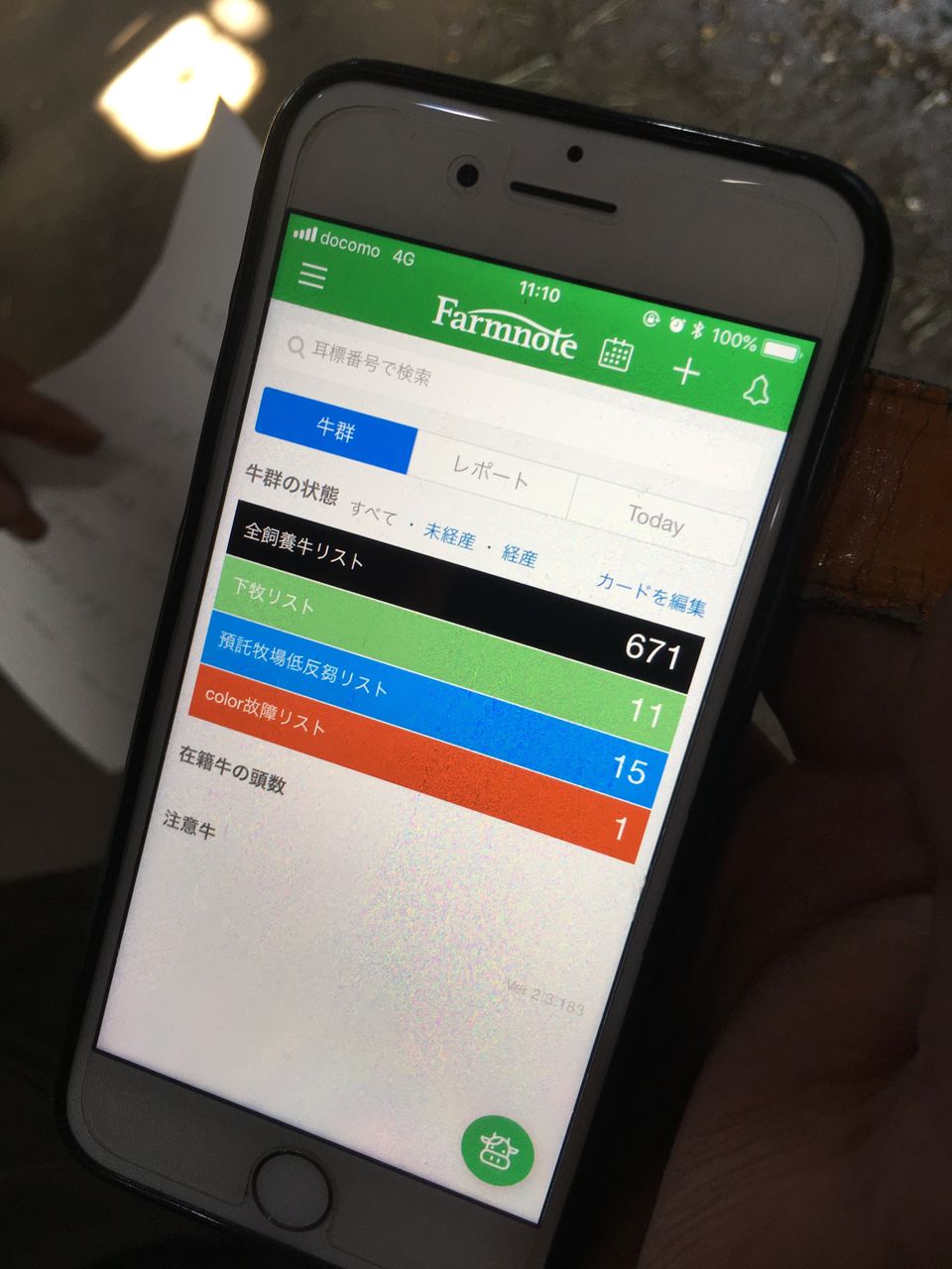「$さんの預かりの牛なんですけど・・・ファームノートの反芻量が落ちてるんで・・・」