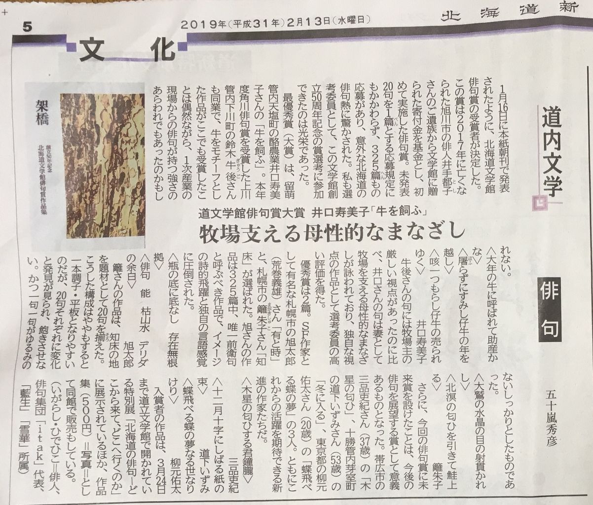 このたび新設された北海道文学館俳句賞の、