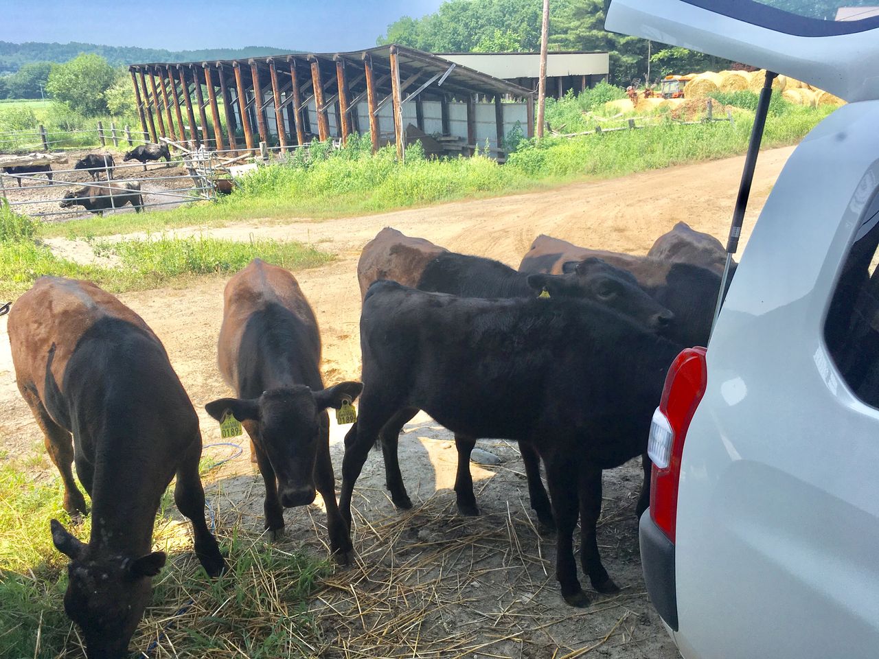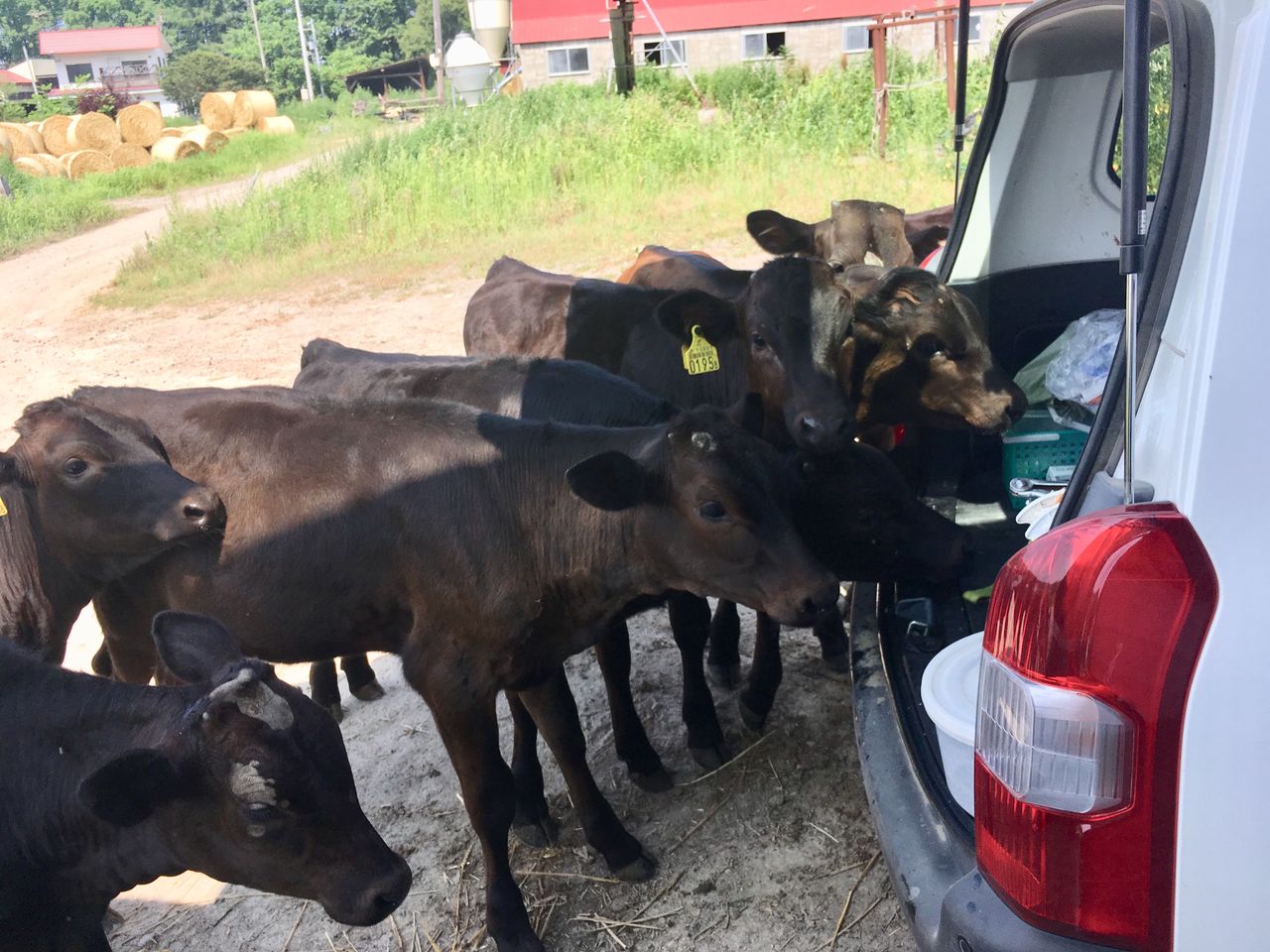 牛舎の傍に車を止めて、