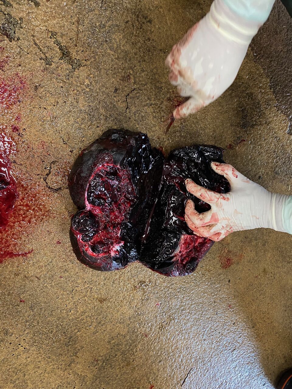 外された腫瘤は手術室の床にぐんにゃりと落ちた。