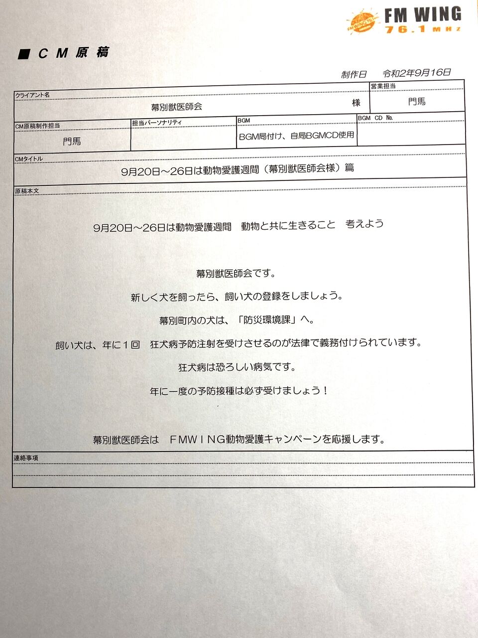 「9月20〜26日は動物愛護週間 動物と共に生きること 考えよう幕別獣医師会です。