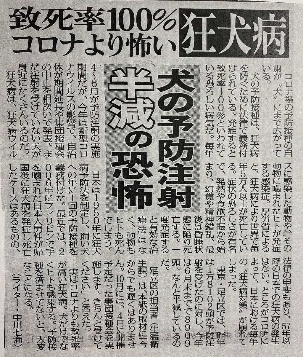というのは本当で致死率の非常に高い狂犬病ウイルスが