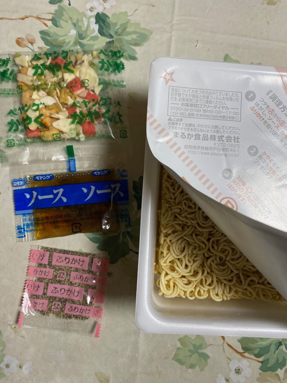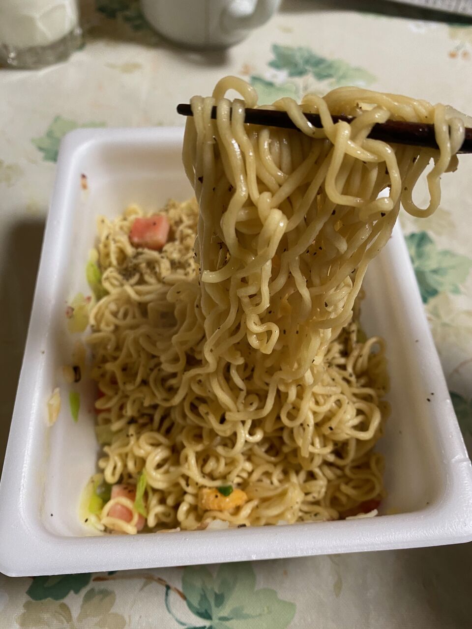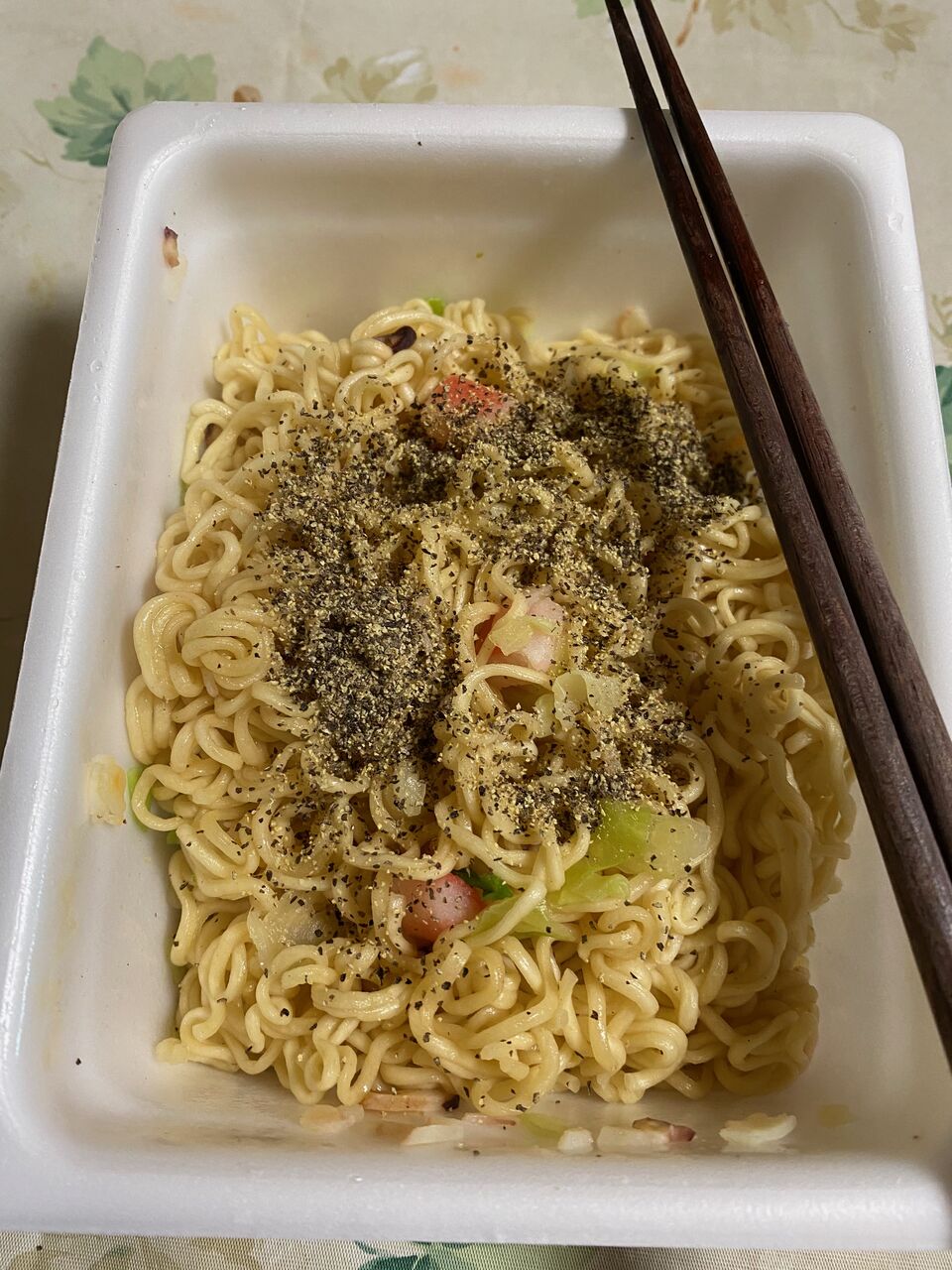 カップ焼きそばもそうです。食べみたくなるような文面めん。