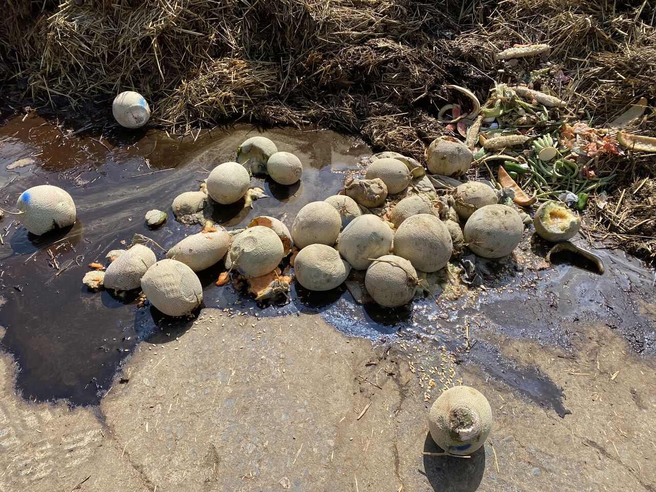メロンがたくさん堆肥の山の傍に転がっていた。