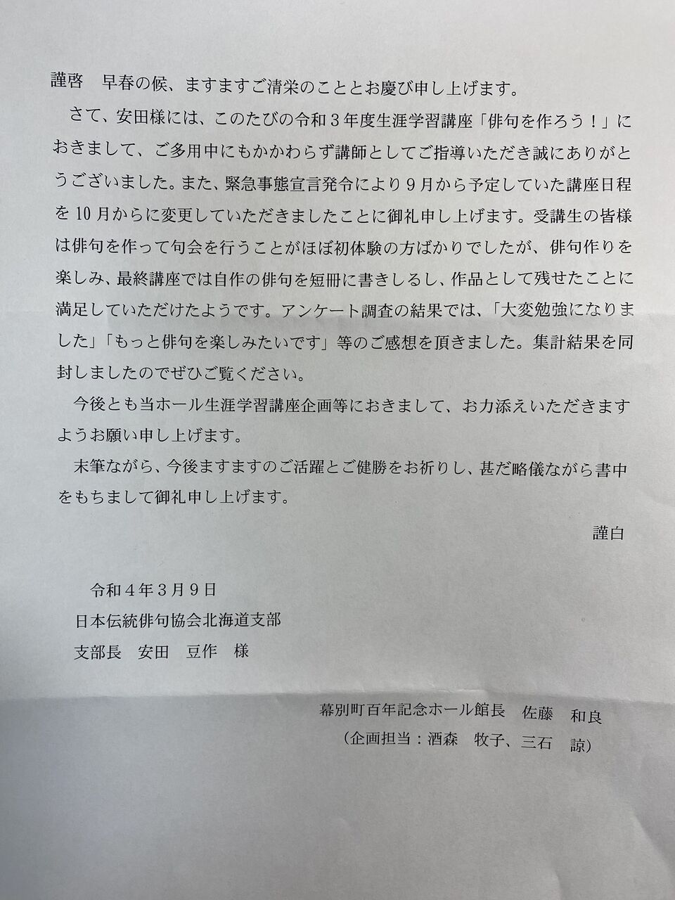 最後の回では参加者の皆さんの詠んだ全ての俳句の中から