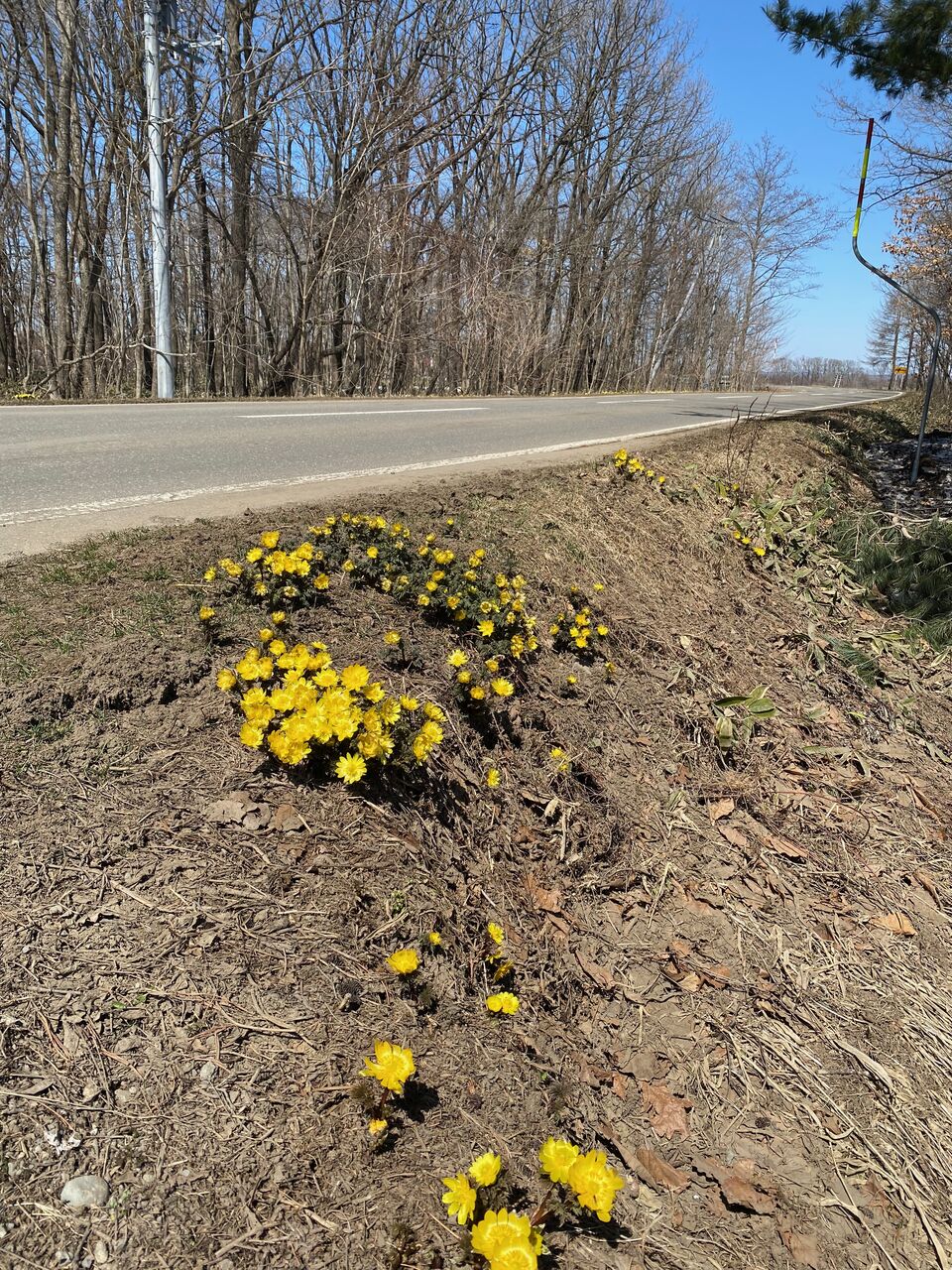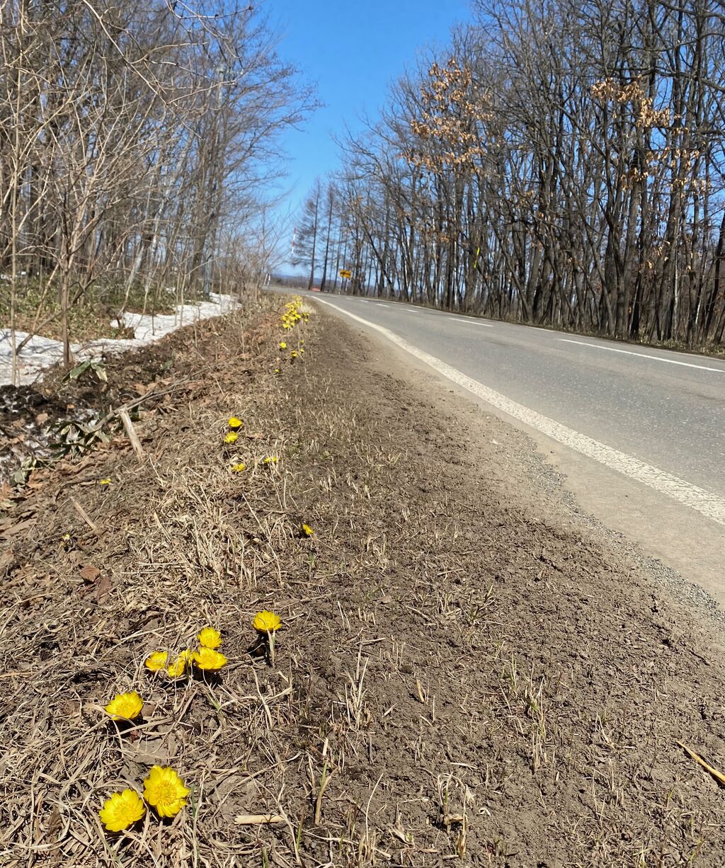雪が解けたばかりの路肩に