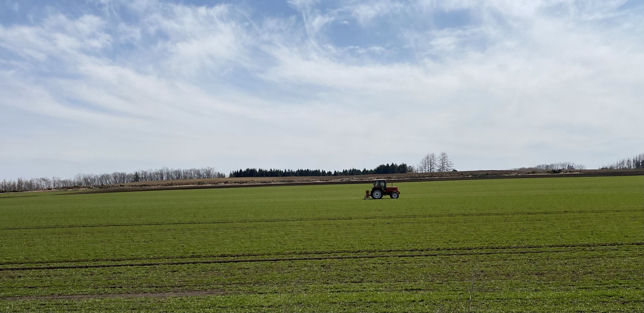 青々とした麦畑に早くもトラクターの姿があった。