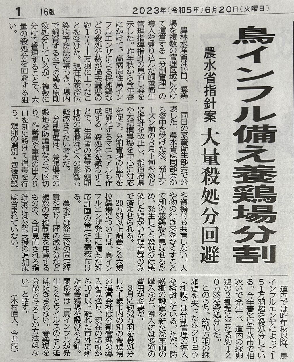 採卵鶏の大量の殺処分も